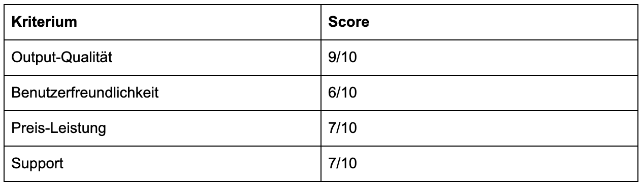 - Pro: 800€/Monat (50.000 Credits/Monat)