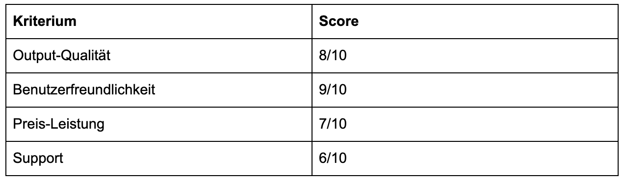 - Kostenstruktur – Die Nutzung basiert auf einem Credit-System, was bei intensivem Gebrauch schnell teuer werden kann und eine genaue Kostenkontrolle erfordert.